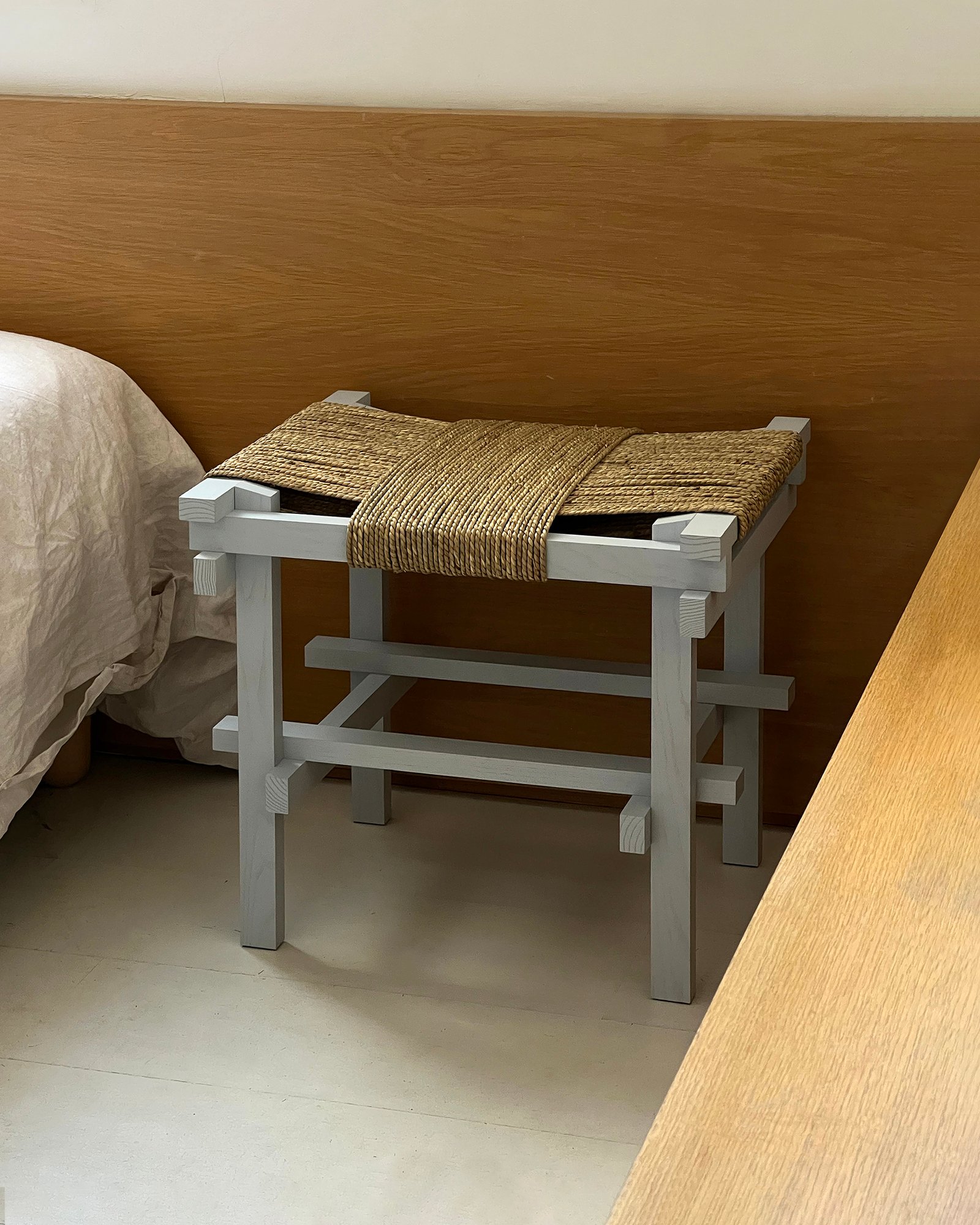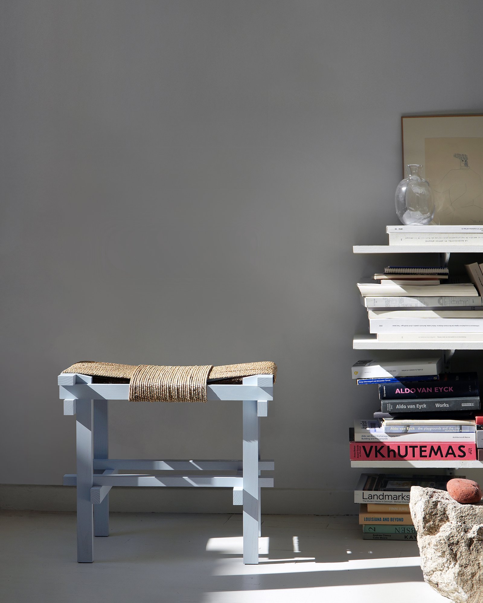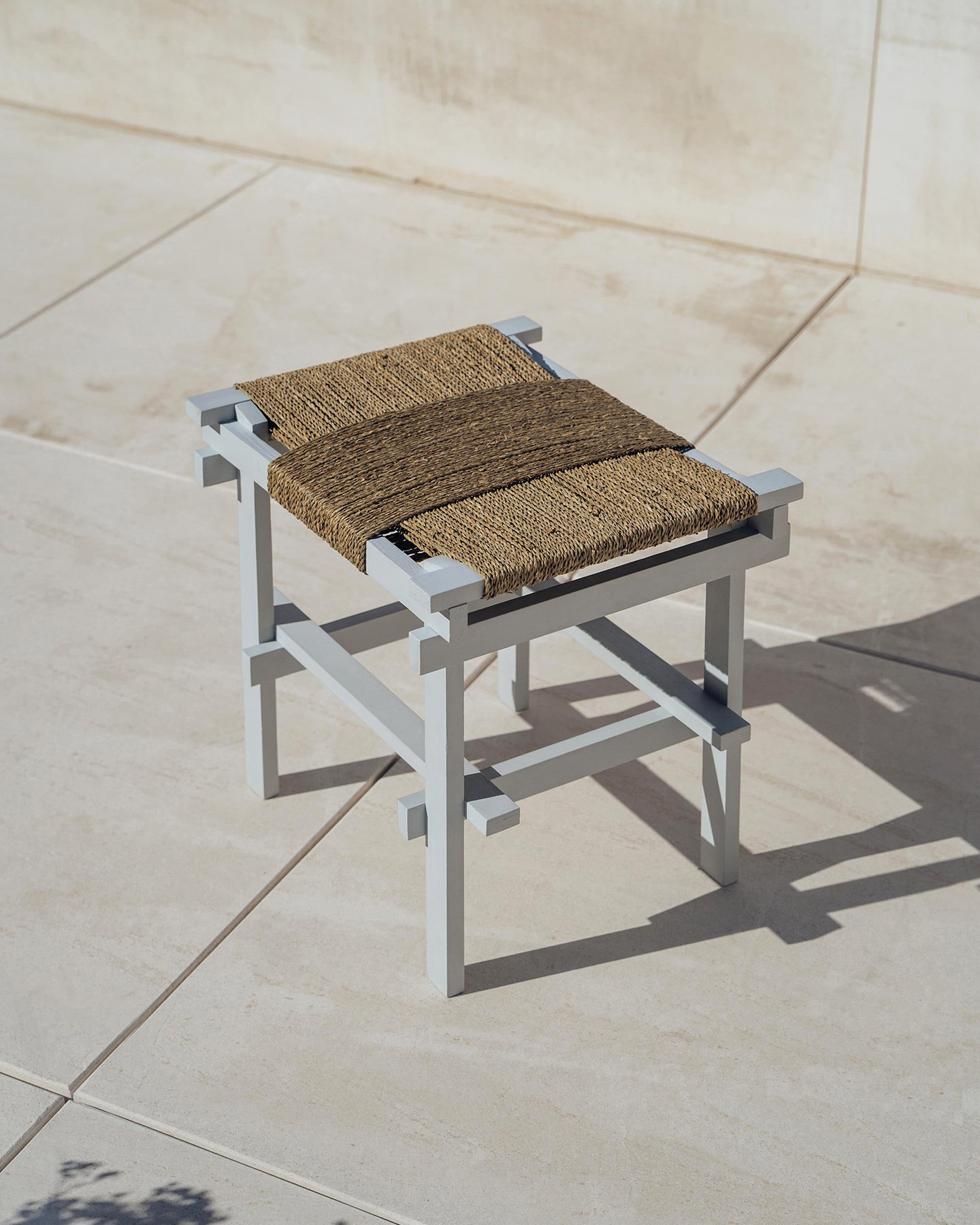 This stool is produced in collaboration with Juan Sánchez, a local craftsman who runs the esparto grass shop that his grandfather opened in the neighbourhood of La Latina in Madrid almost a century ago. The seat is made in seagrass rope, a very traditional material used to make chairs, backrests, decorations and other crafts.