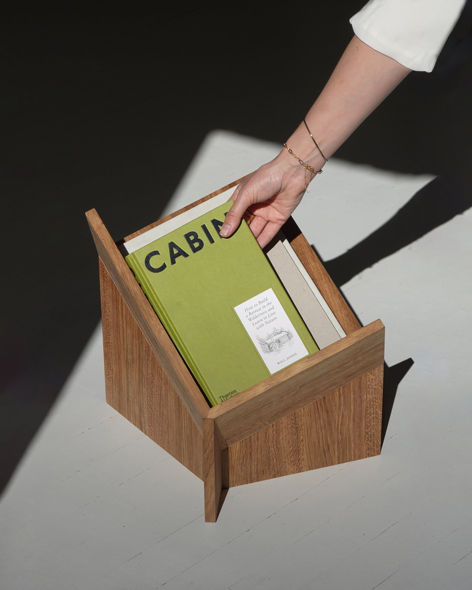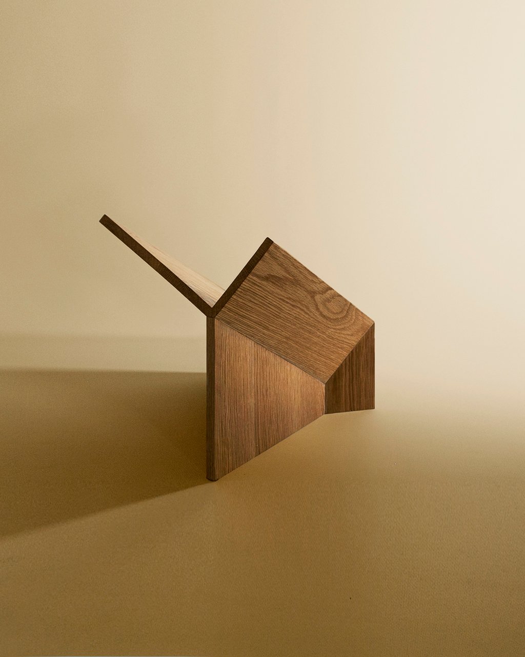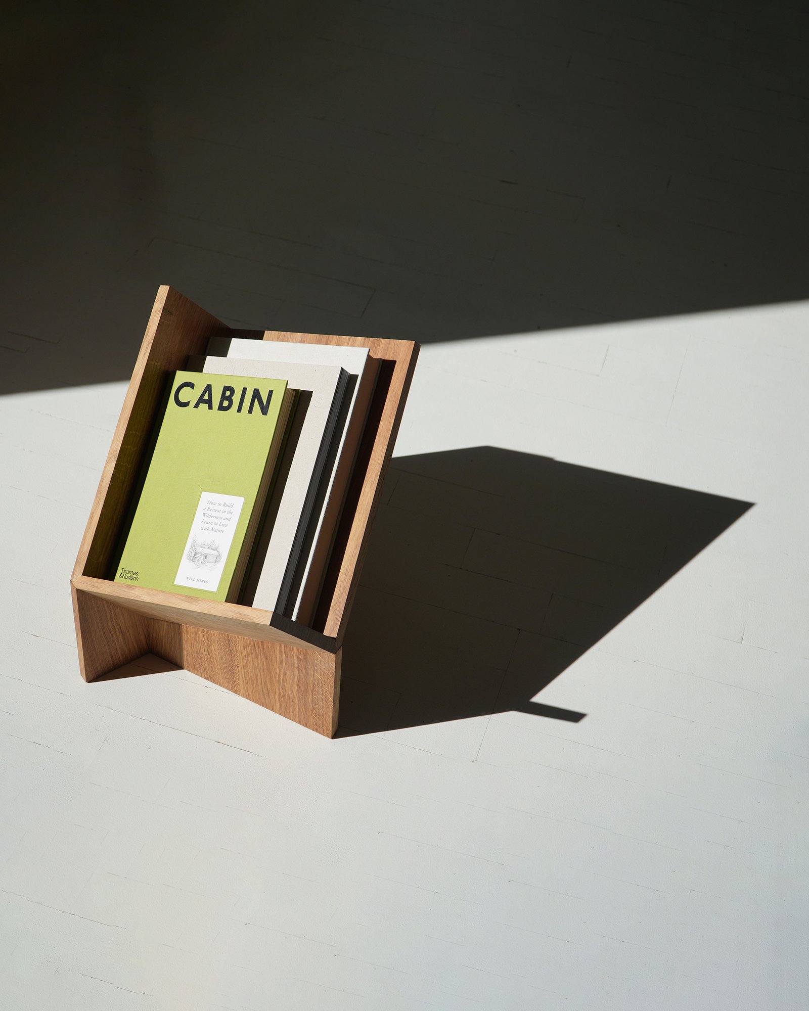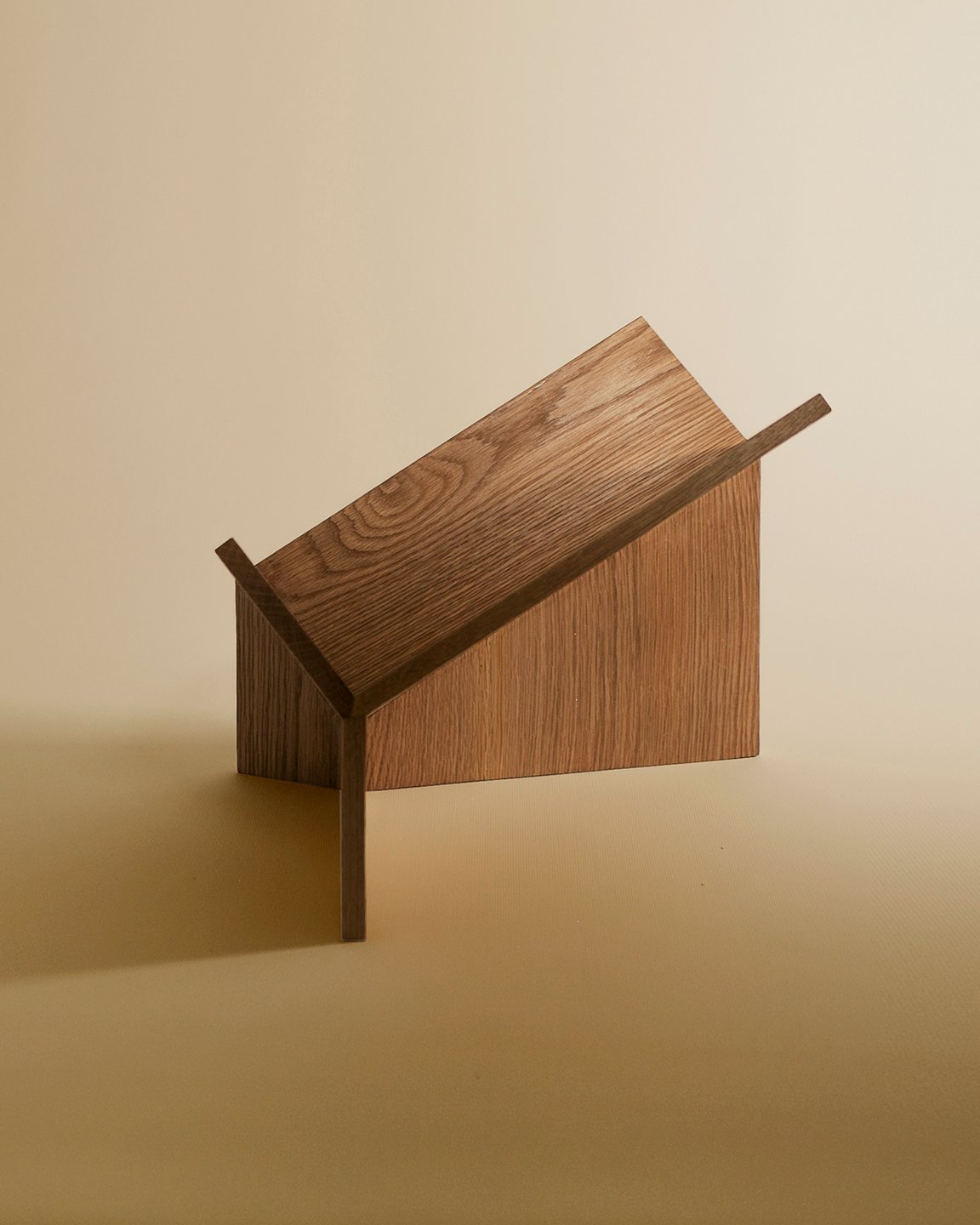 El concepto de diseño de este revistero surge de la idea de romper con la norma y desafiar lo establecido. Al contrario de lo que suele pasar, las superficies donde reposarán los libros y revistas no están alineadas con ninguno de los tres planos definidos por nuestros ejes cartesianos X, Y y Z, sino que están inclinadas en todas las direcciones mediante dos simples rotaciones.